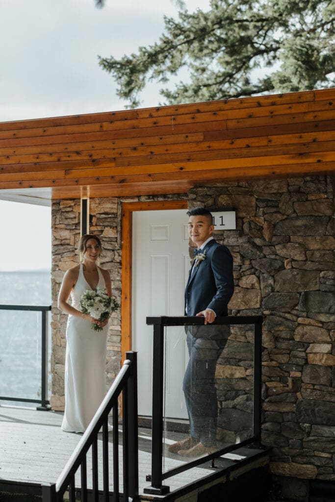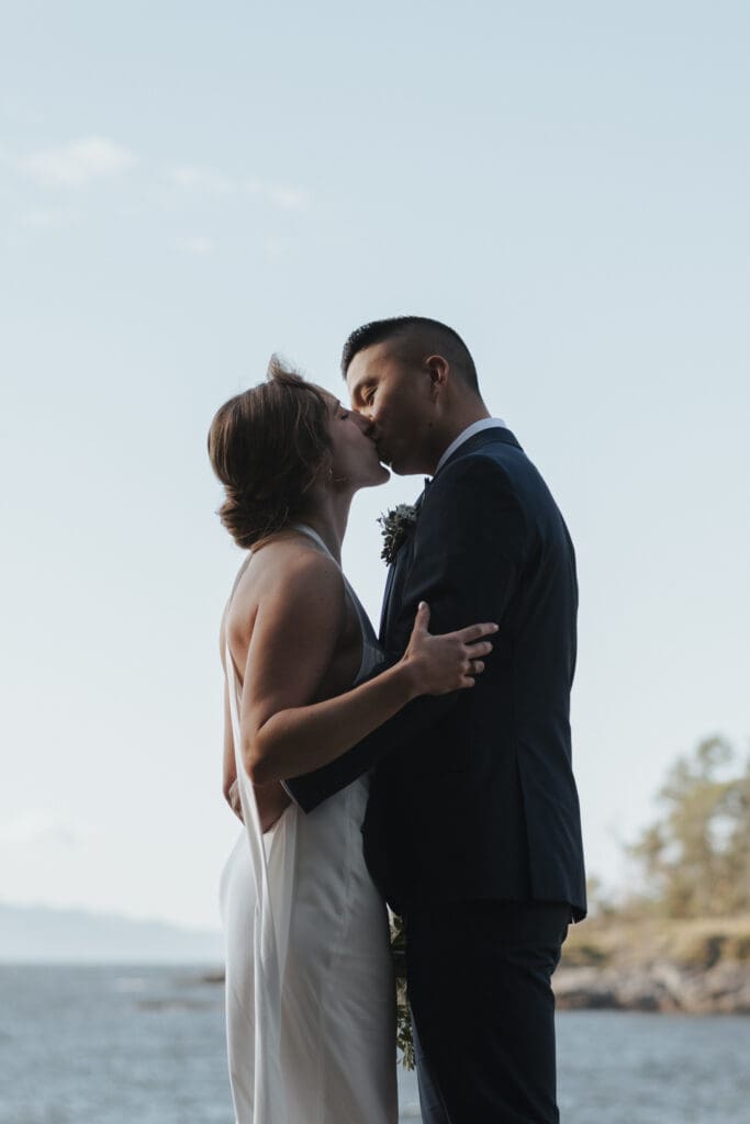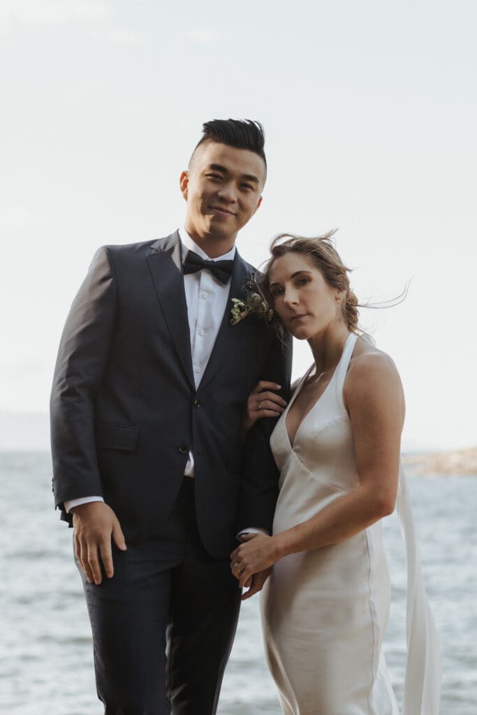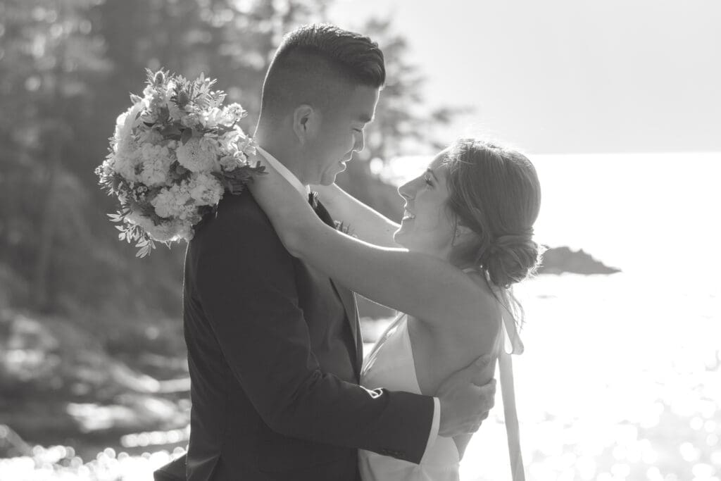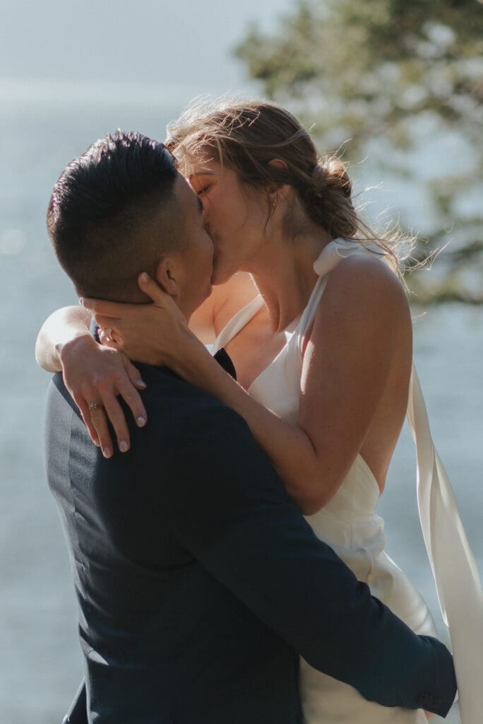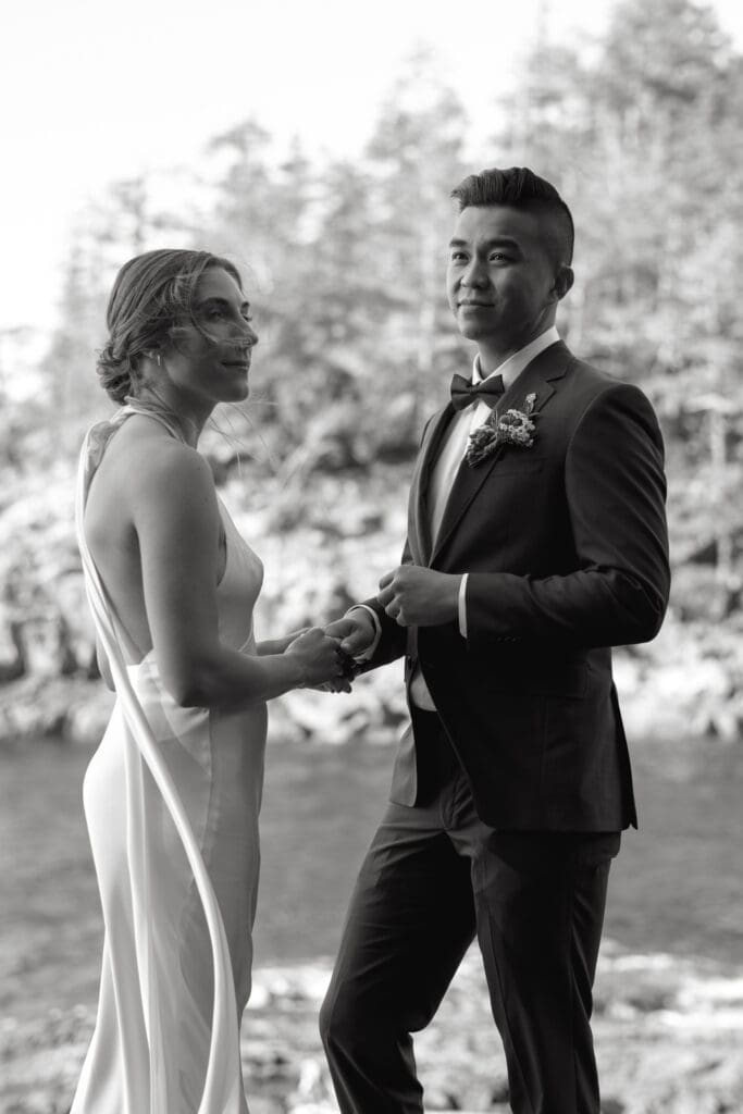 The Sunshine Coast sits in this quiet in-between: less remote than Tofino, less busy than Whistler, just under an hour from Vancouver, and somehow it still feels like you’ve stepped into something slower. That’s what drew Randi and Ben out from Calgary for their coastal elopement. They got ready overlooking the water at Rockwater Secret Cove Resort, then we explored the cliffs and shoreline at Francis Point Provincial Park where you’ll find forest, rock, open ocean all within minutes of each other. It’s what makes a Sunshine Coast elopement work so beautifully: layered coastal landscapes, soft reflective light, and enough space to feel witnessed without feeling watched.