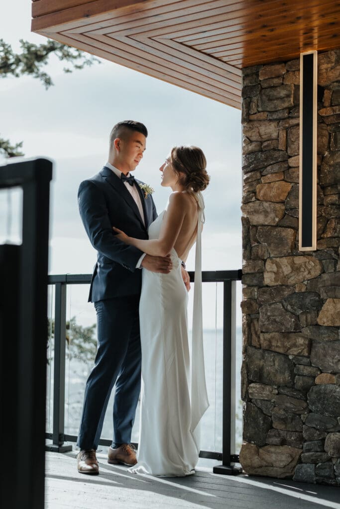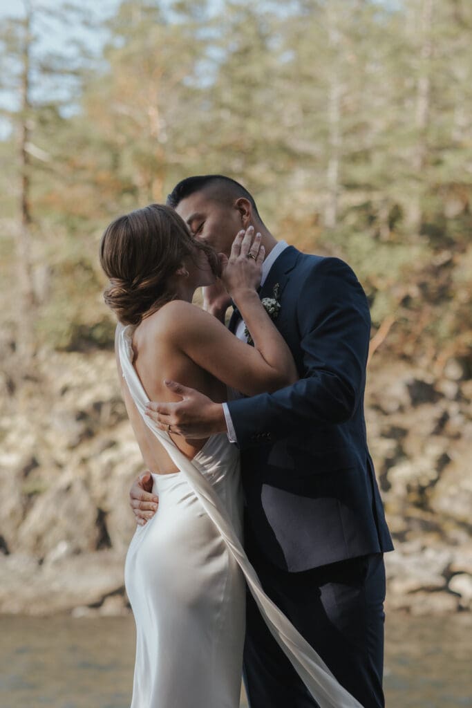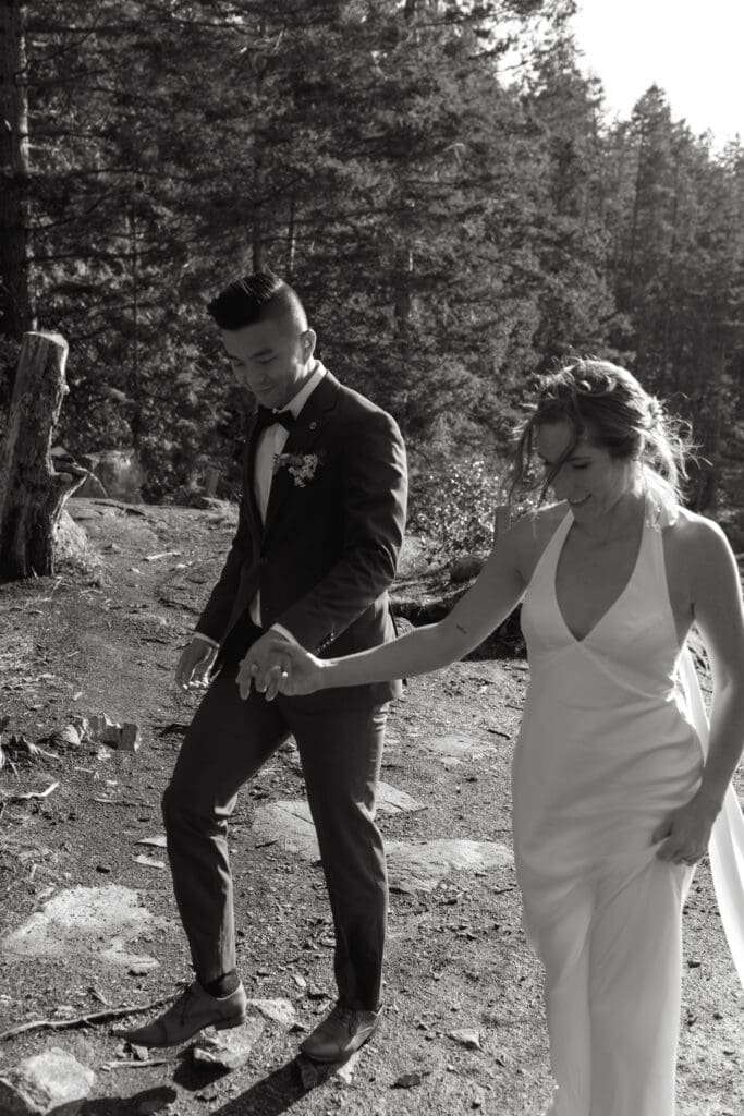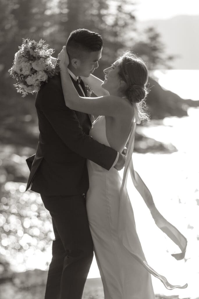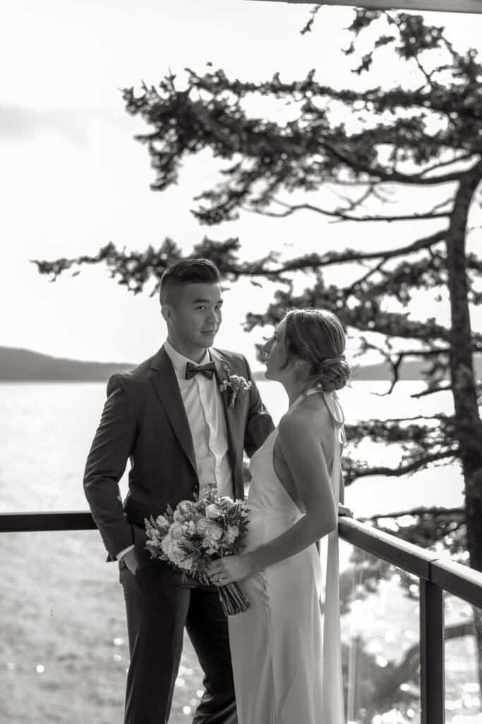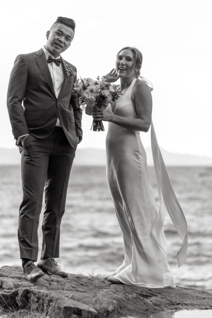 The Sunshine Coast sits in this quiet in-between: less remote than Tofino, less busy than Whistler, just under an hour from Vancouver, and somehow it still feels like you’ve stepped into something slower. That’s what drew Randi and Ben out from Calgary for their coastal elopement. They got ready overlooking the water at Rockwater Secret Cove Resort, then we explored the cliffs and shoreline at Francis Point Provincial Park where you’ll find forest, rock, open ocean all within minutes of each other. It’s what makes a Sunshine Coast elopement work so beautifully: layered coastal landscapes, soft reflective light, and enough space to feel witnessed without feeling watched.