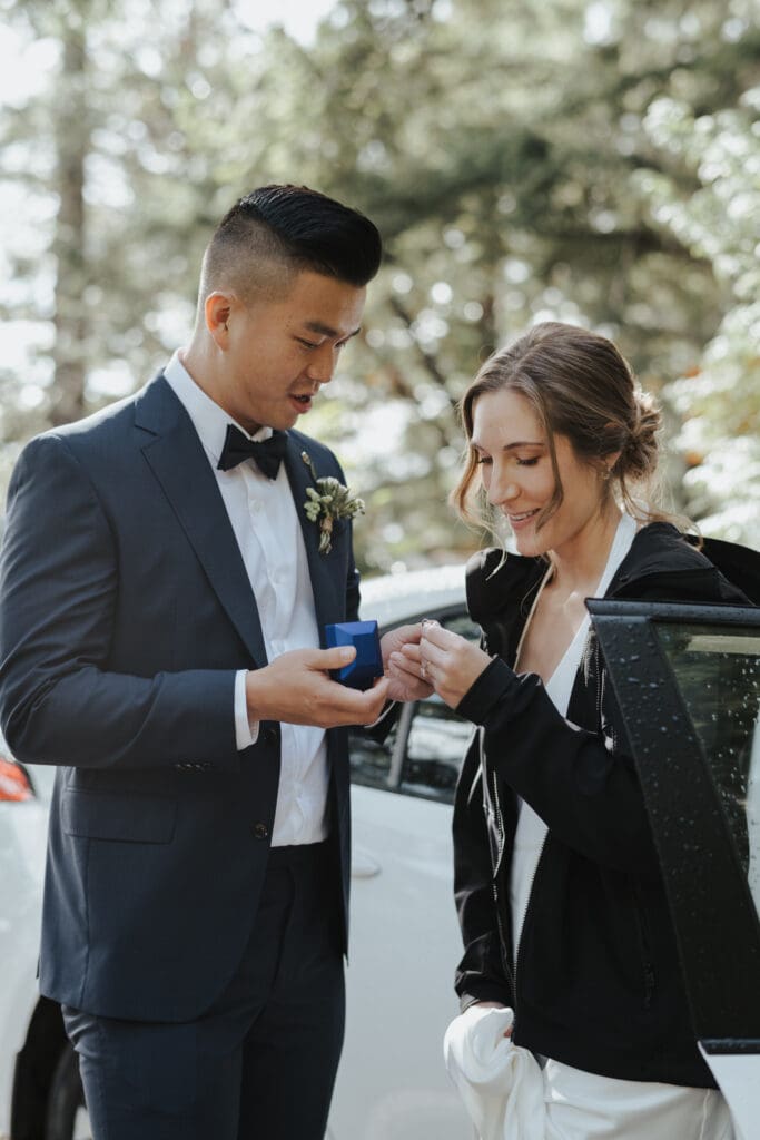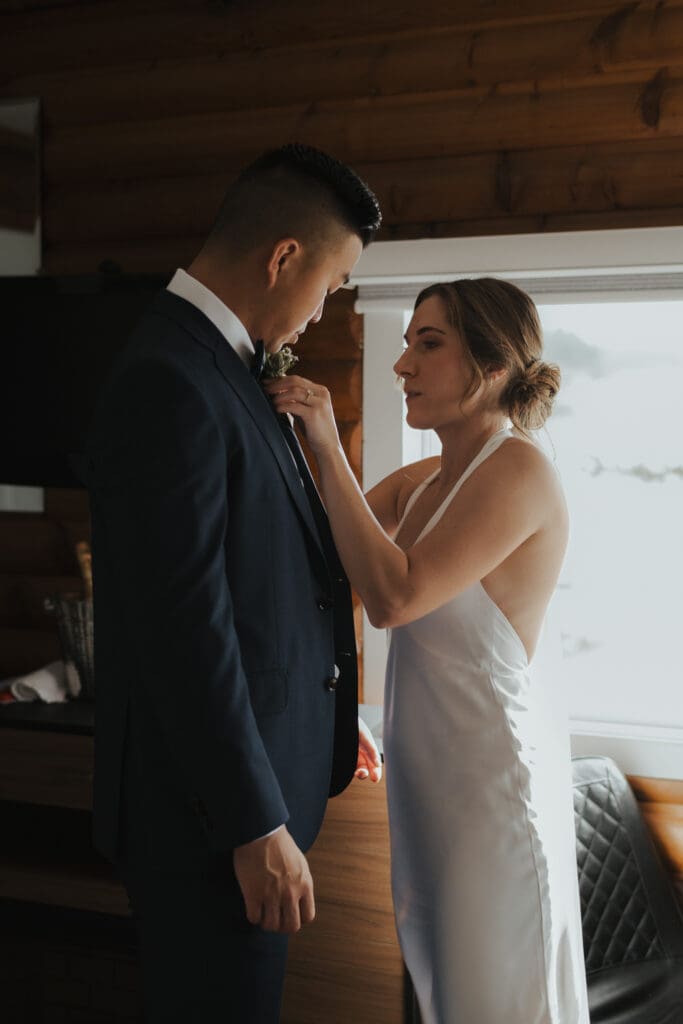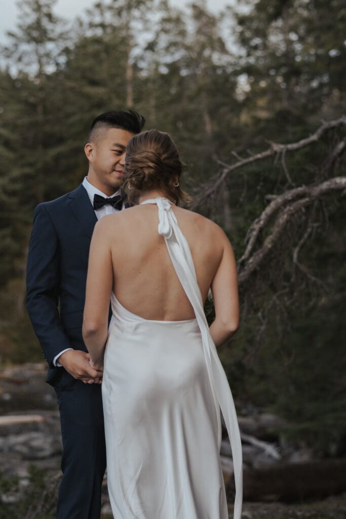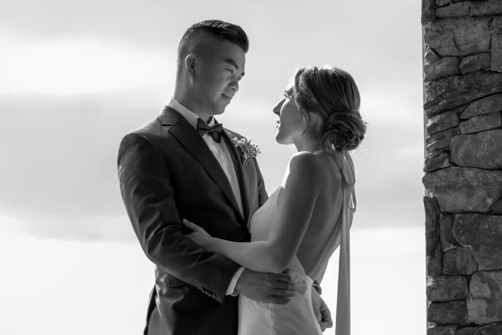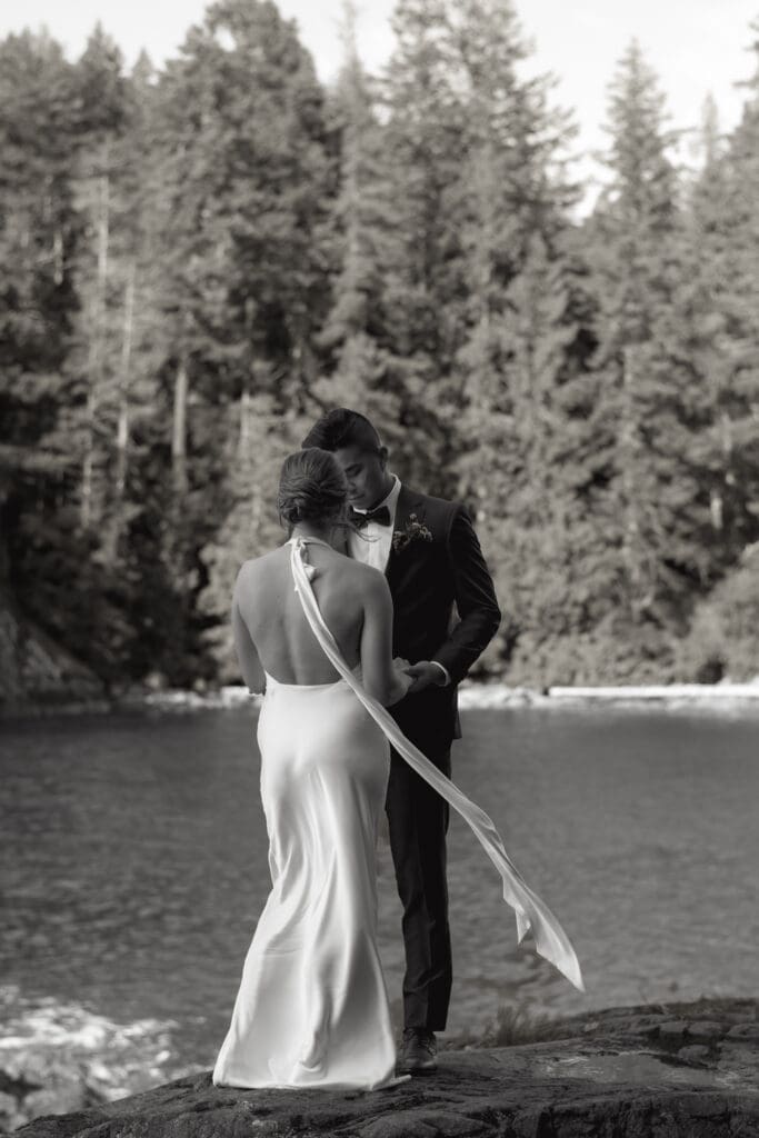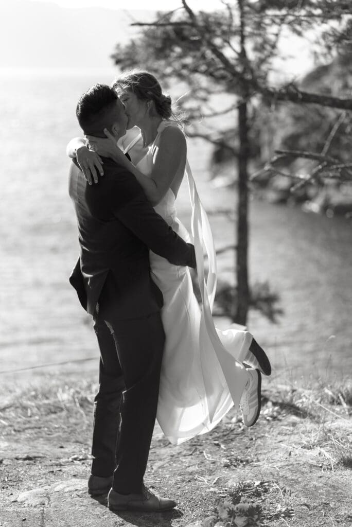 The Sunshine Coast sits in this quiet in-between: less remote than Tofino, less busy than Whistler, just under an hour from Vancouver, and somehow it still feels like you’ve stepped into something slower. That’s what drew Randi and Ben out from Calgary for their coastal elopement. They got ready overlooking the water at Rockwater Secret Cove Resort, then we explored the cliffs and shoreline at Francis Point Provincial Park where you’ll find forest, rock, open ocean all within minutes of each other. It’s what makes a Sunshine Coast elopement work so beautifully: layered coastal landscapes, soft reflective light, and enough space to feel witnessed without feeling watched.