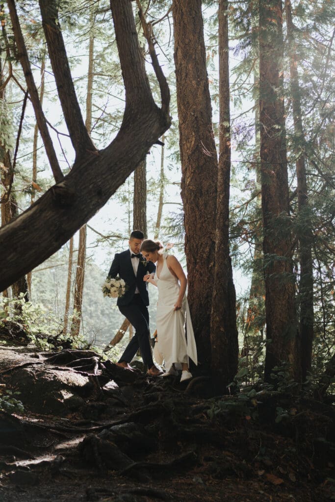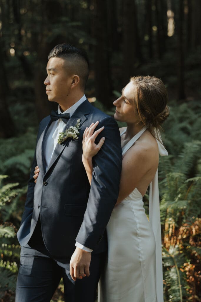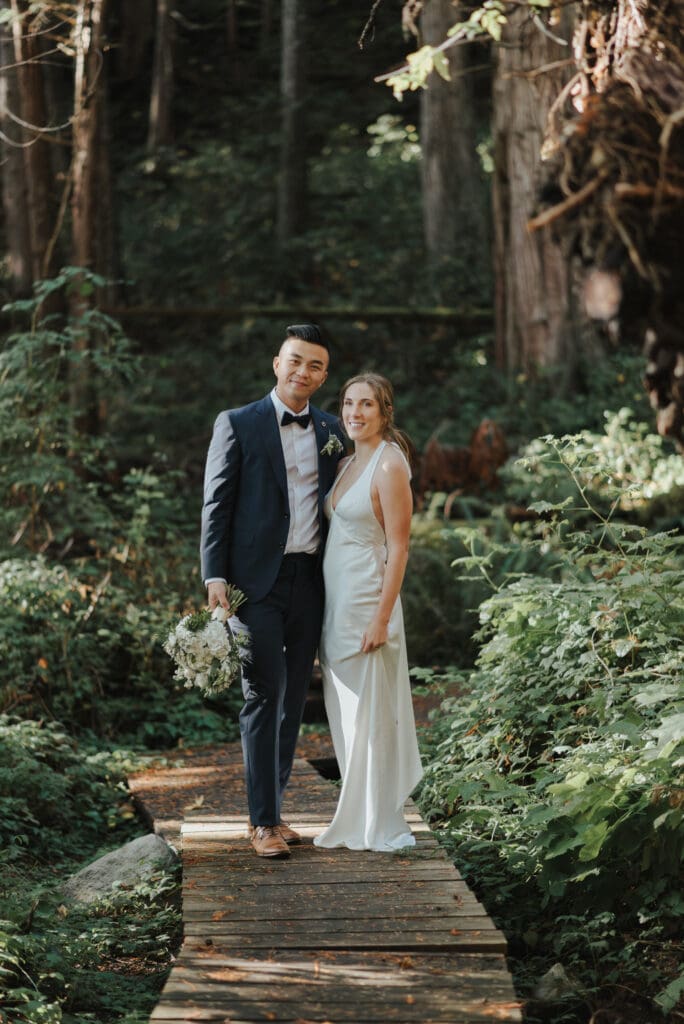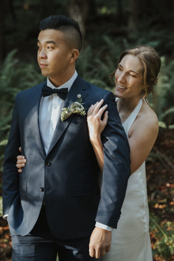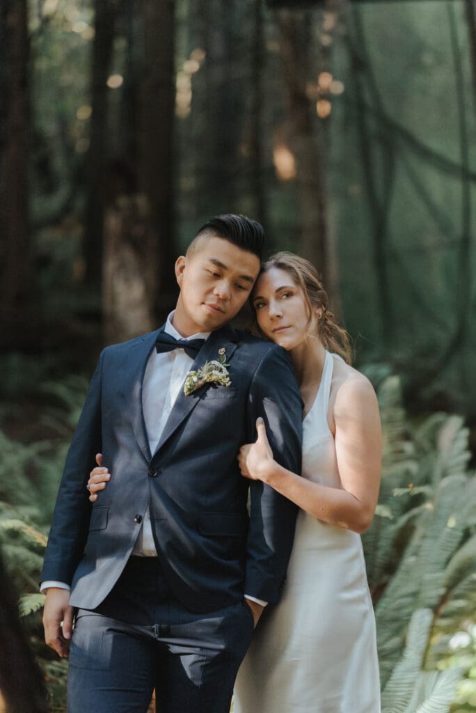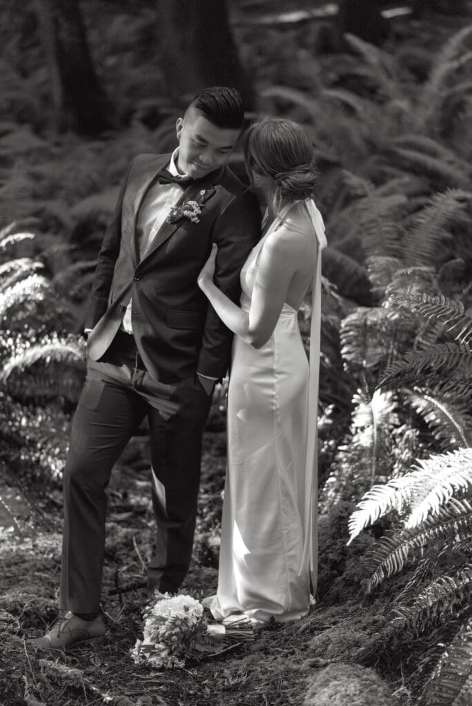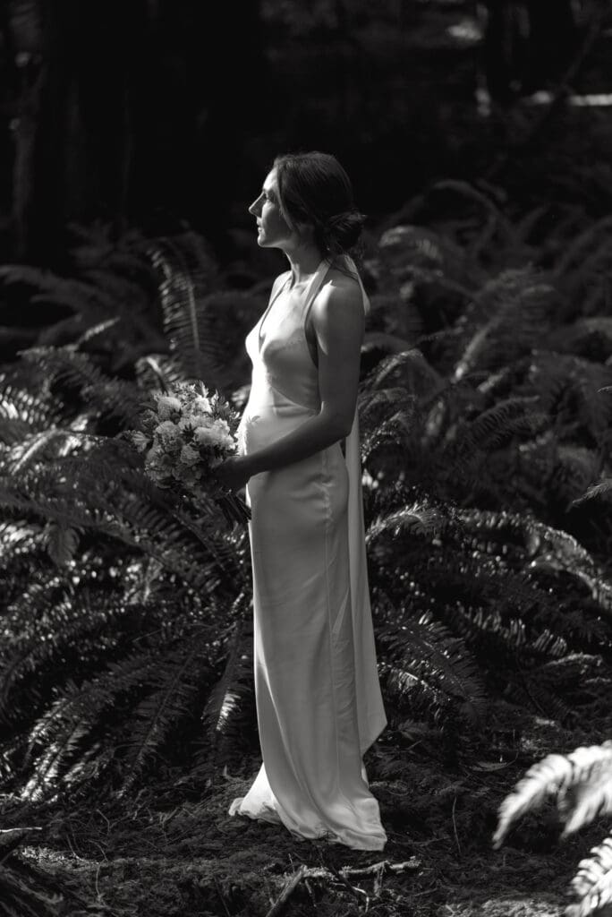 There’s a particular rhythm to elopements on the Sunshine Coast, a kind of unhurried intention that settles in the moment you step off the ferry, when the air smells like salt and cedar and the light moves differently here, softer and slower, filtering through the trees in a way that makes everything feel both grounded and a little bit suspended in time.