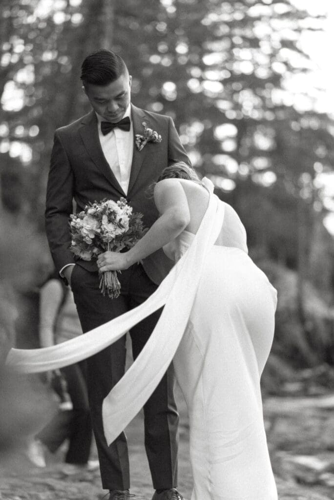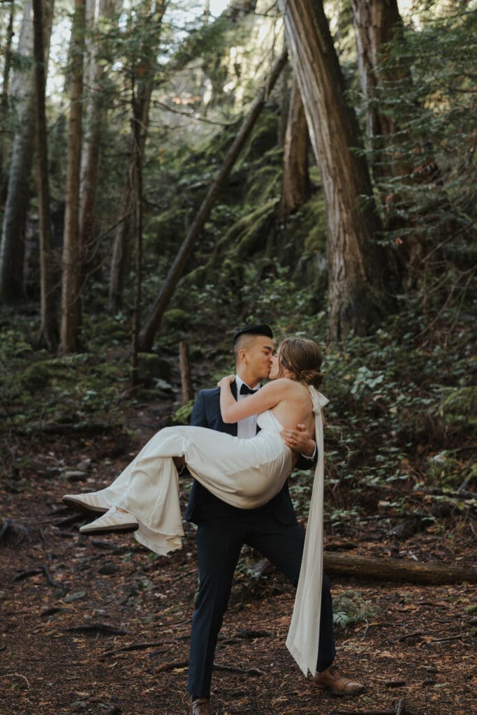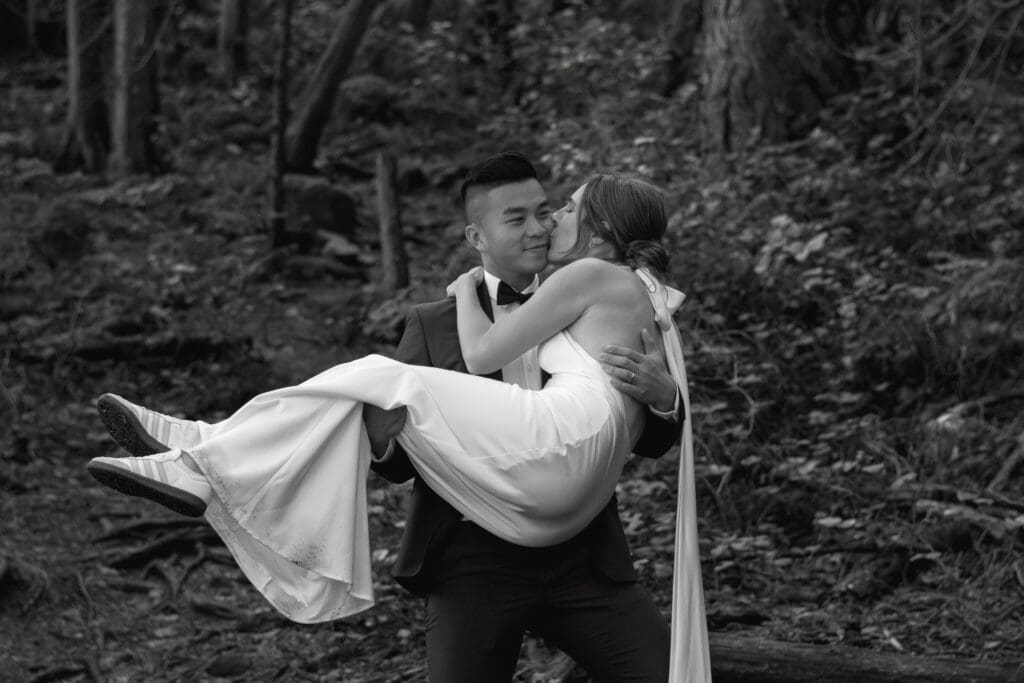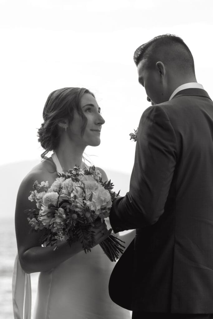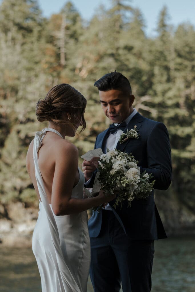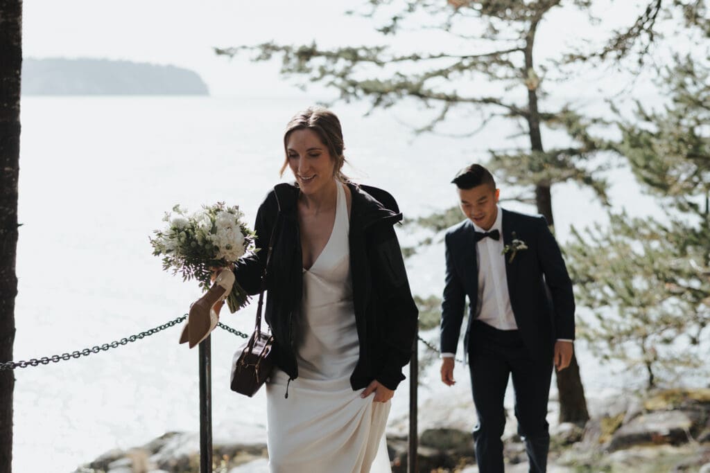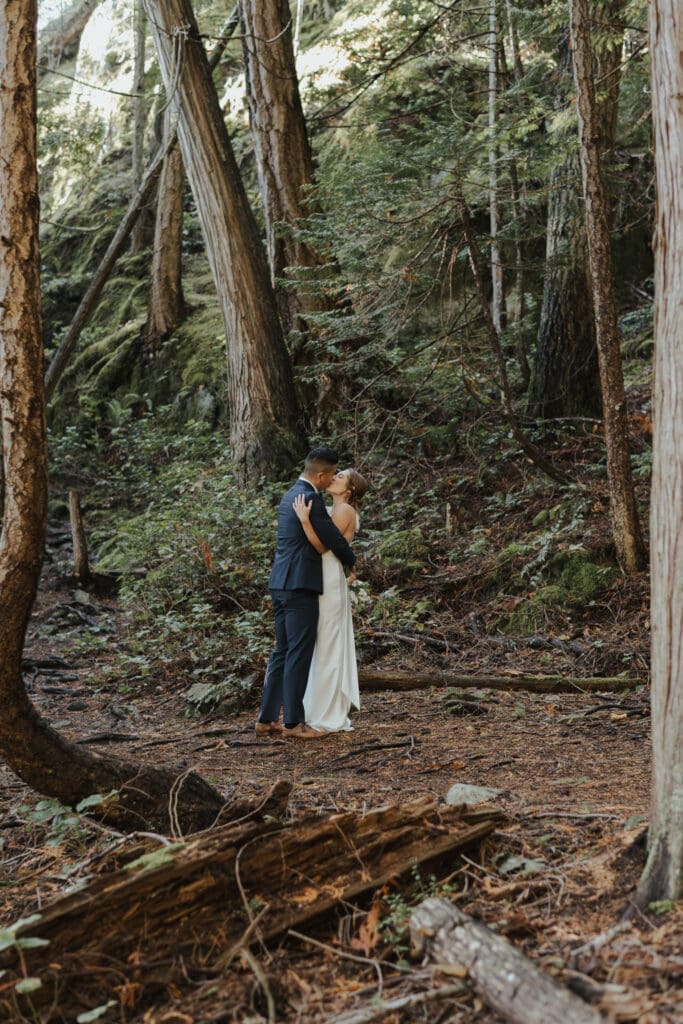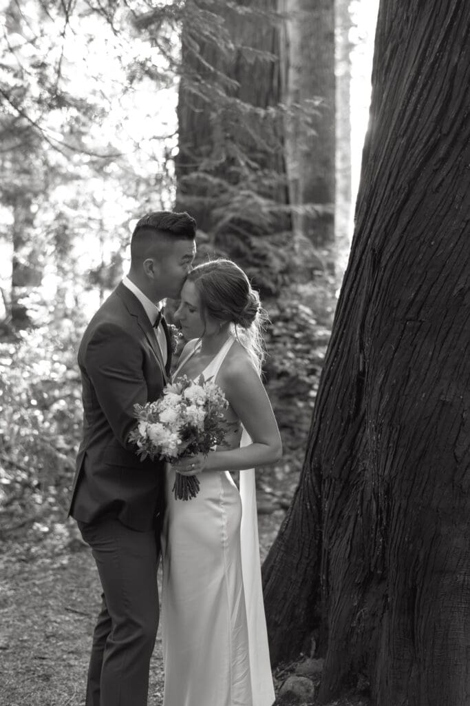 There’s a particular rhythm to elopements on the Sunshine Coast, a kind of unhurried intention that settles in the moment you step off the ferry, when the air smells like salt and cedar and the light moves differently here, softer and slower, filtering through the trees in a way that makes everything feel both grounded and a little bit suspended in time.
